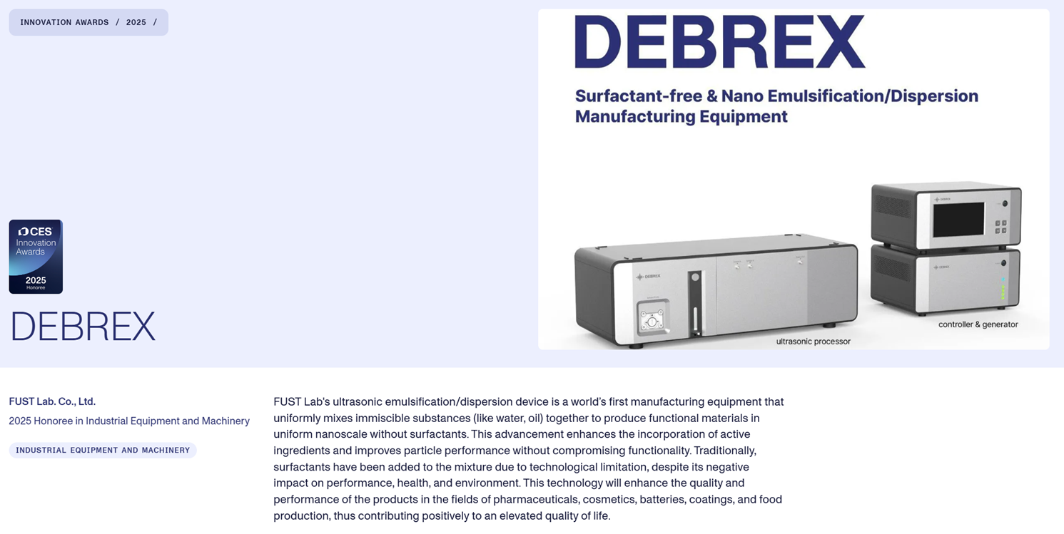 (주)퍼스트랩의 무계면활성제 및 나노 분산유화장비가 세계 최대 기술전시회인 CES...